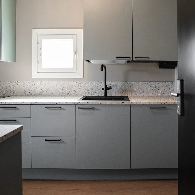 Vuonna 2025 uudelleen saneeratussa hotellissa ratkaisuja on mietitty asiakas edellä ja tämä näkyykin uniikissa ja fiilistellyssä lopputuloksessa. Käytännön ratkaisut palvelevat sekä loma- ja liikematkustamista. Oli vierailusi sitten lyhyt- tai pitkäaikaista. Jokaisesta hotellihuoneesta löytyy jääkaappi, mikro sekä vedenkeitin ja kalustetuista asunnoista puolestaan täysi keittiövarustelu.